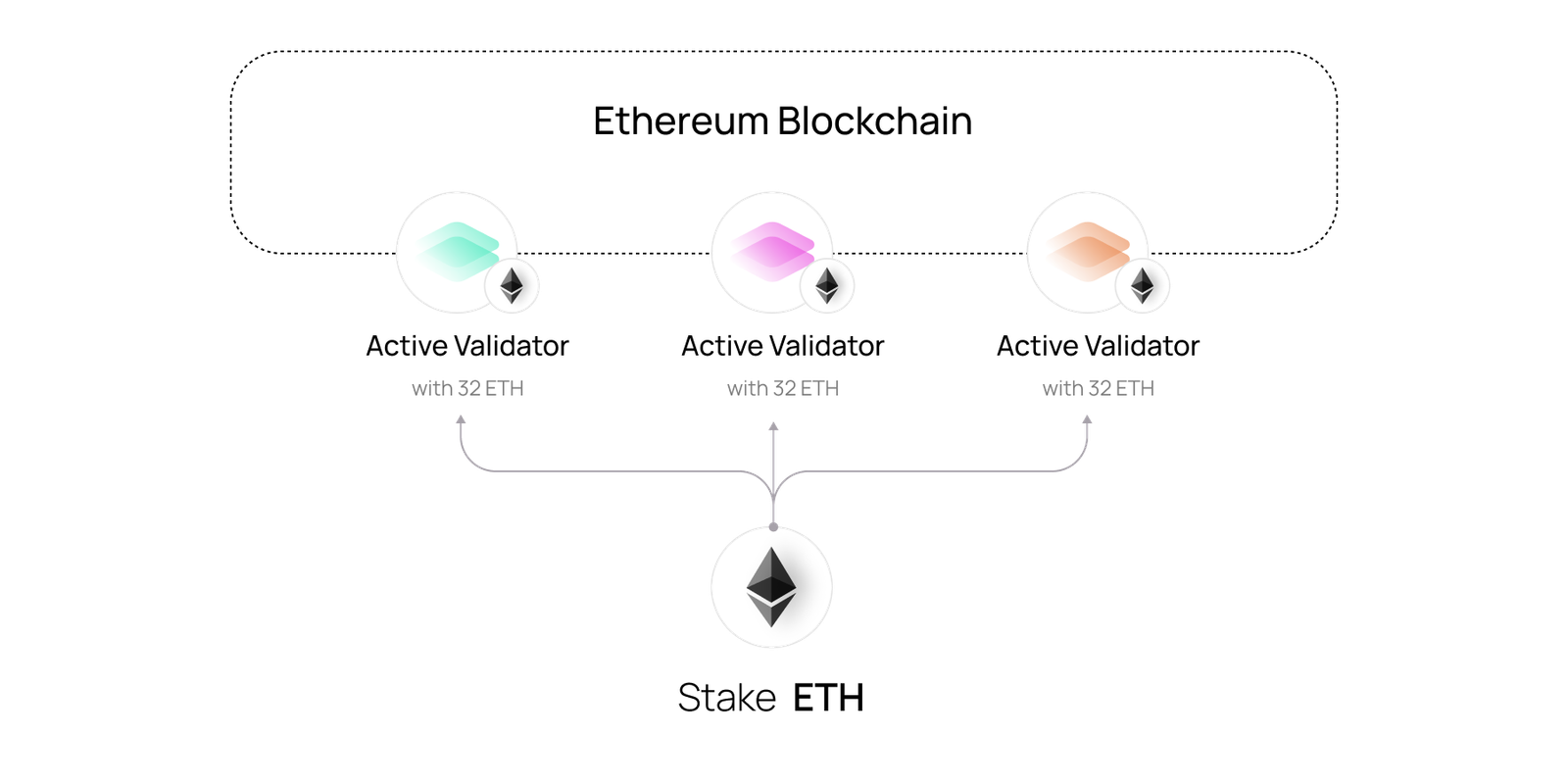 Staking on Ethereum involves locking 32+ ether (ETH) to secure the blockchain by running a network validator. Validators propose and validate blocks, earning rewards for performing their duties timely and correctly, or facing penalties for downtime or rule violations.